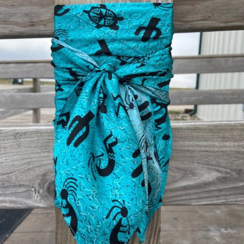 This Turquoise wild rag has a cool kokopelli, cactus print throughout it and is super unique!Â